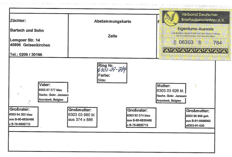 *prawdopodobnie samiec** Oryginalny gołąb z hodowli Ryszard Lebiedziejewskiego. Szczegóły pochodzenia w rodowodzie. Więcej informacji pod nr tel.: 530 152 182. **Gołębie po kuracjach przygotowane do sezonu. **Transport gołębi prywatnym kurierem 100 zł do 3 szt. od 4szt do 6szt 150zł.