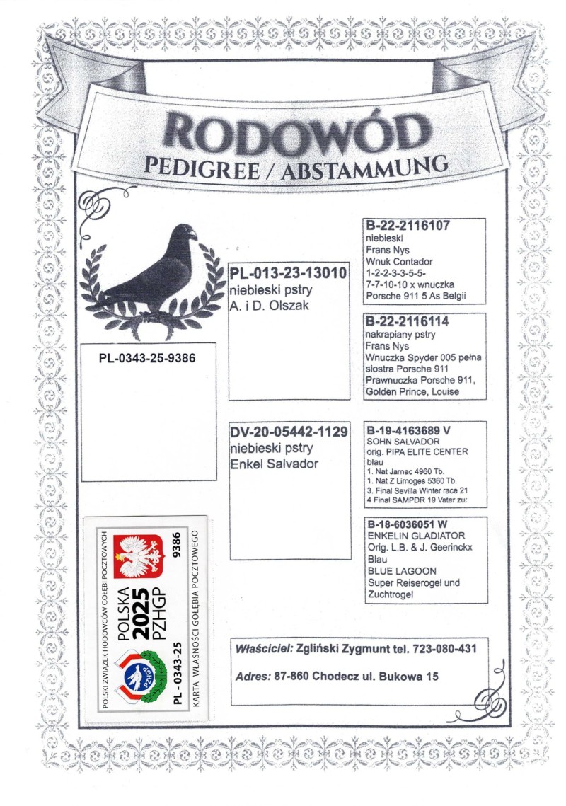 LIKWIDACJA HODOWLI Oryginalny gołąb z hodowli Zygmunta Zglińskiego. Szczegóły pochodzenia w rodowodzie. Więcej informacji pod nr tel.: 723080431
