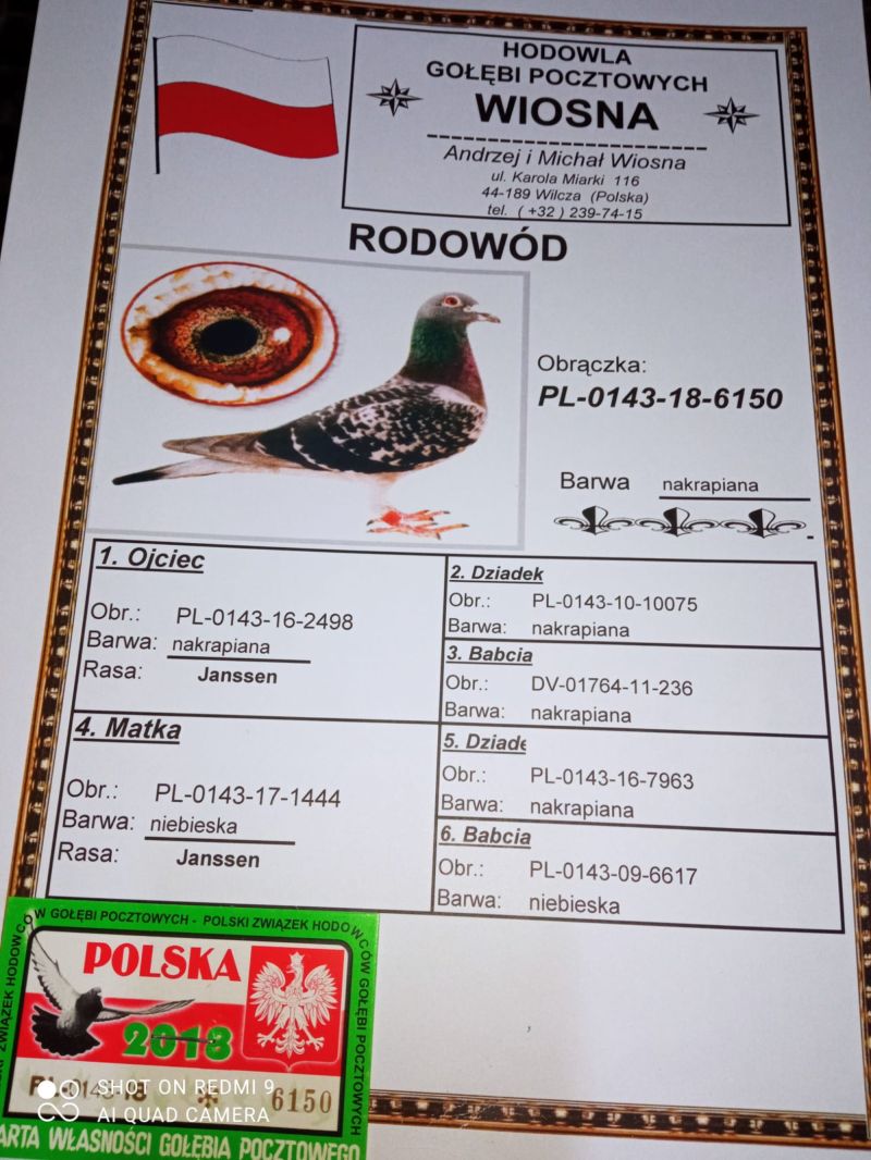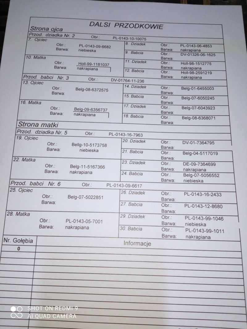Płeć: samiec Hodowca - rasa: oryg. Andrzej i Michał Wiosna Zakończenie: 27.12.2025 godz. 18:56