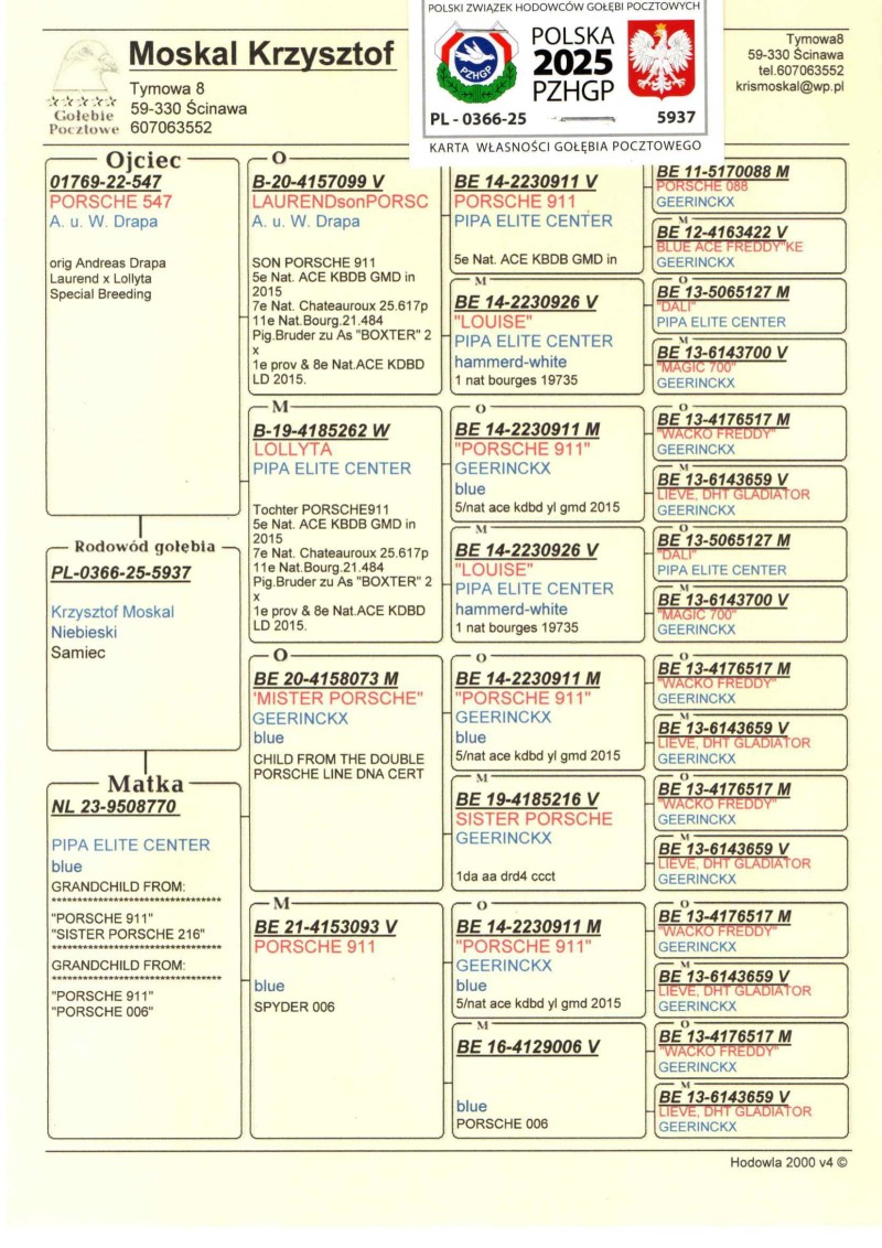 PL-0366-25-5937 - oryg. Krzysztof Moskal - wnuk x wnuczka inbred / Porsche911