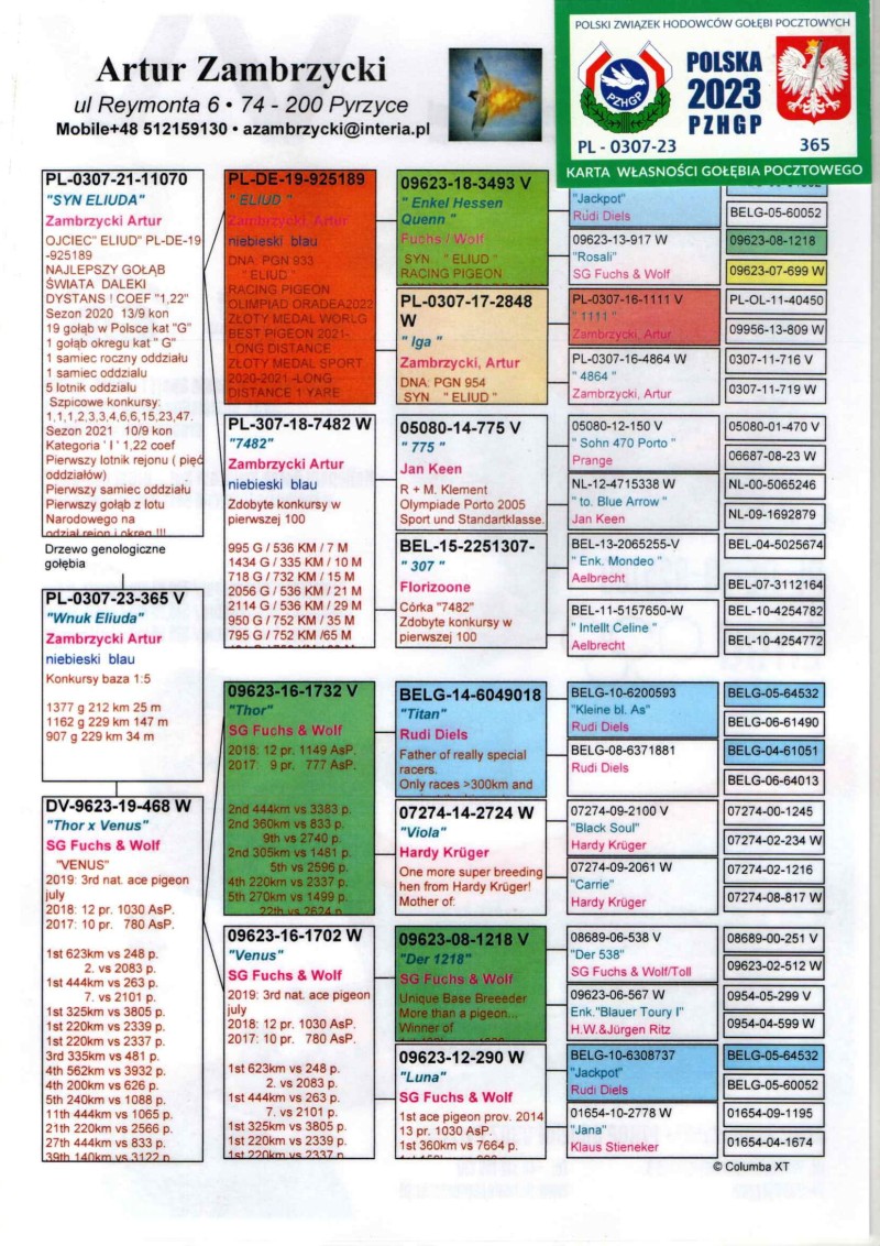 PL-0366-25-5955 - oryg. Krzysztof Moskal - wnuk Eliud x wnuczka 1111 100% Artur Zambrzycki