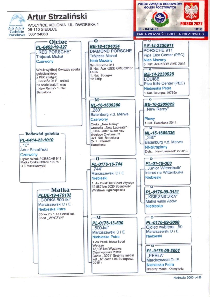 Oryginalny gołąb z hodowli Krzysztofa Moskala. Szczegóły pochodzenia w rodowodzie. Więcej informacji pod nr tel.: 607 063 552 *możliwy jest prywatny transport - 150zł/ paczka (max 4 gołębie).