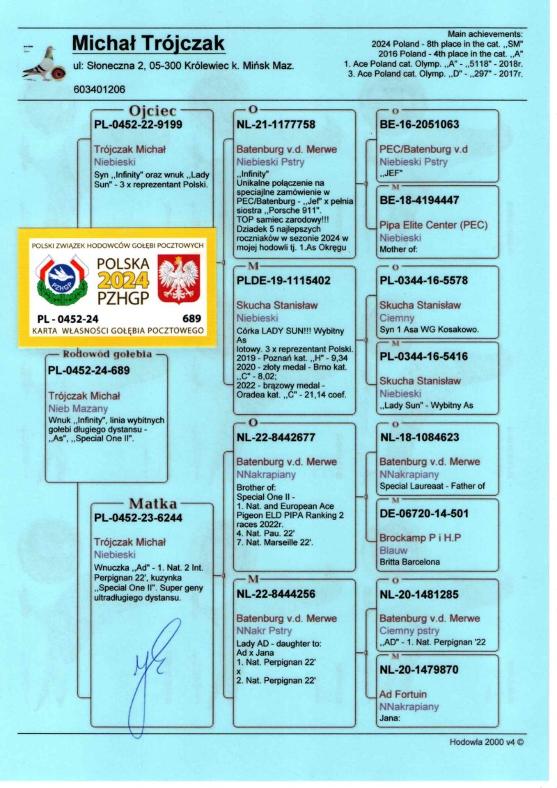 PL-0356-25-7743 - oryg. Krzysztof Moskal - wnuk Infinity x wnuczka Salvador