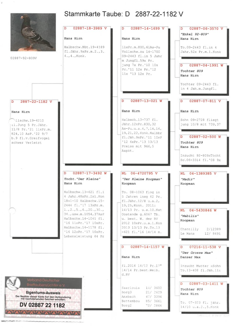 Oryginalny gołąb z hodowli Hans Hirn. Szczegóły pochodzenia w rodowodzie. Więcej informacji pod nr tel.: 601 935 737 *przesyłka 180 zł