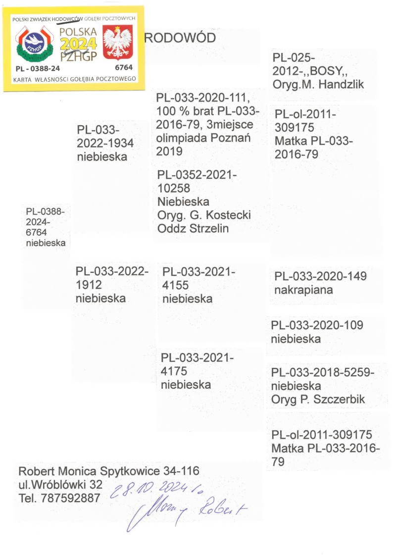 Płeć: samiec Hodowca - rasa: oryg. Robert Monica Zakończenie: 21.12.2025 godz. 22:14