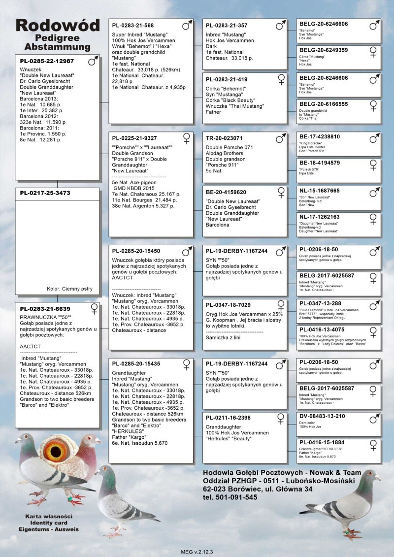 Oryginalny gołąb z hodowli Nowak & Team, szczegóły pochodzenia, rodowód poniżej.