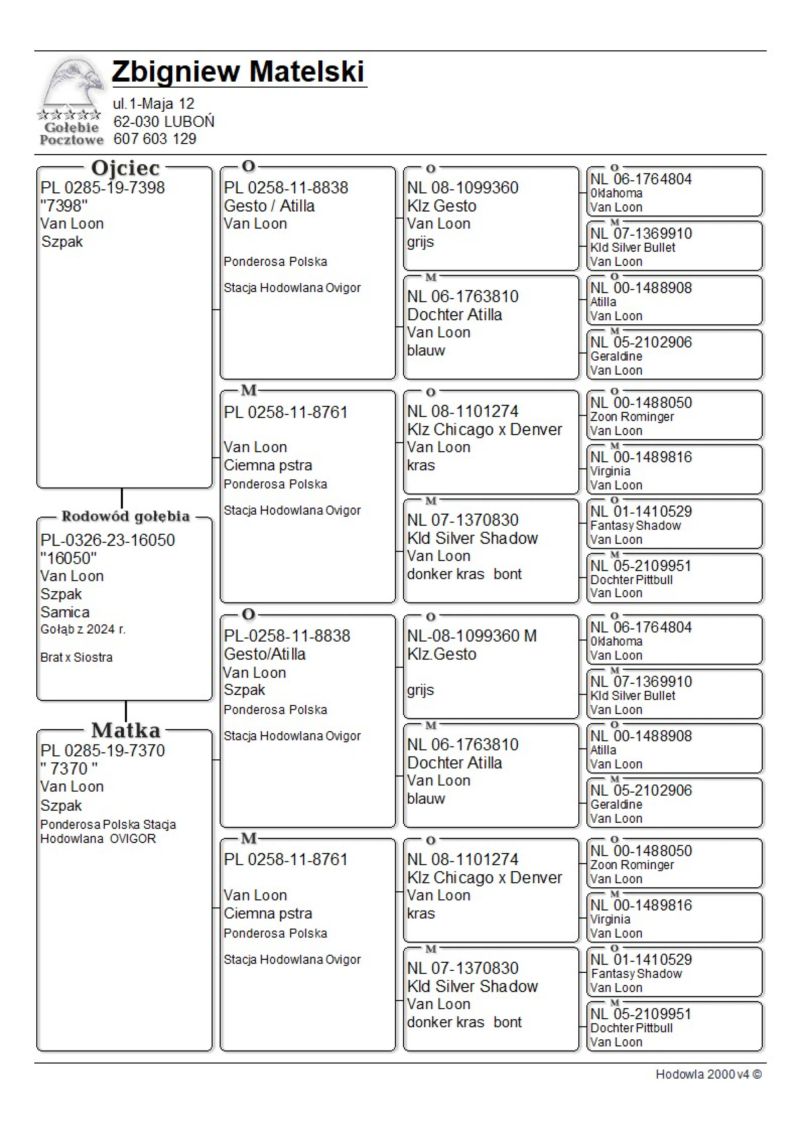 Oryginalny gołąb z hodowli Zbigniew Matelski. Szczegóły pochodzenia i rodowód poniżej.