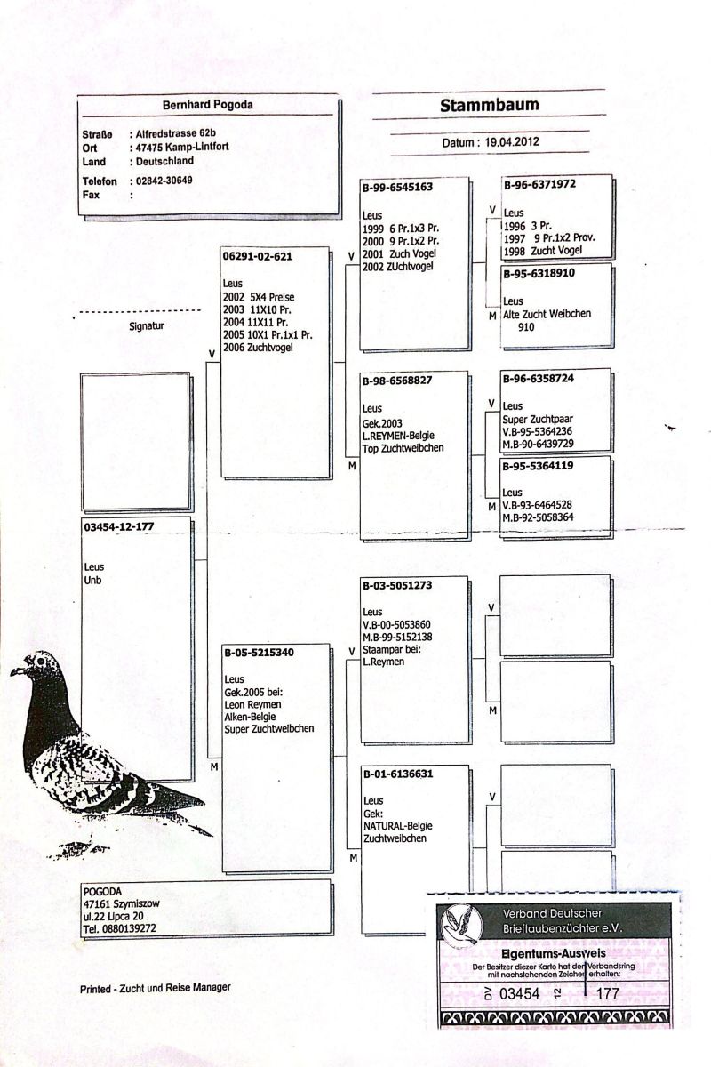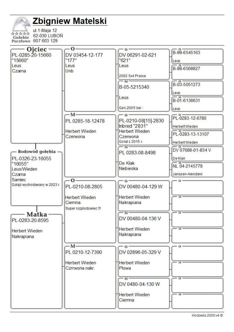 Oryginalny gołąb z hodowli Zbigniew Matelski. Szczegóły pochodzenia i rodowód poniżej.