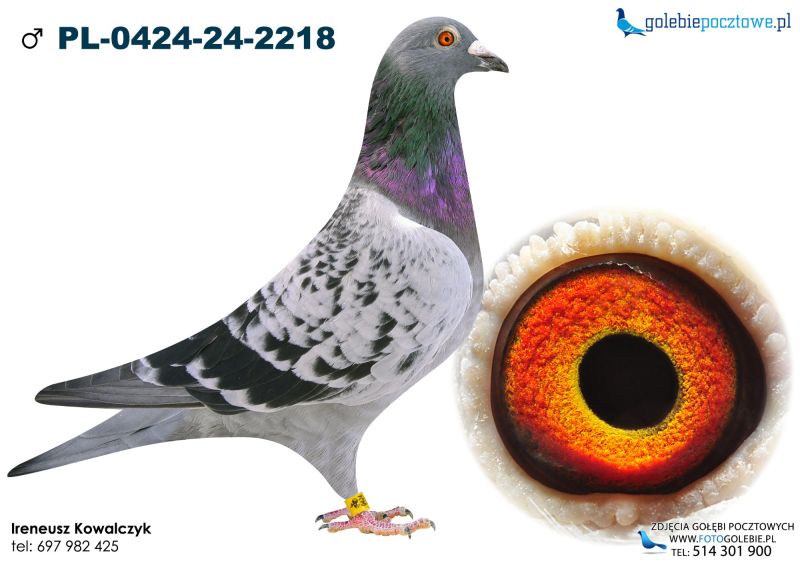 Gołąb z hodowli Ireneusz Kowalczyk. Informację o gołębiu dostępne w rodowodzie. Więcej informacji pod numerem telefonu: 697-982-425. Wysyłka po stronie kupującego