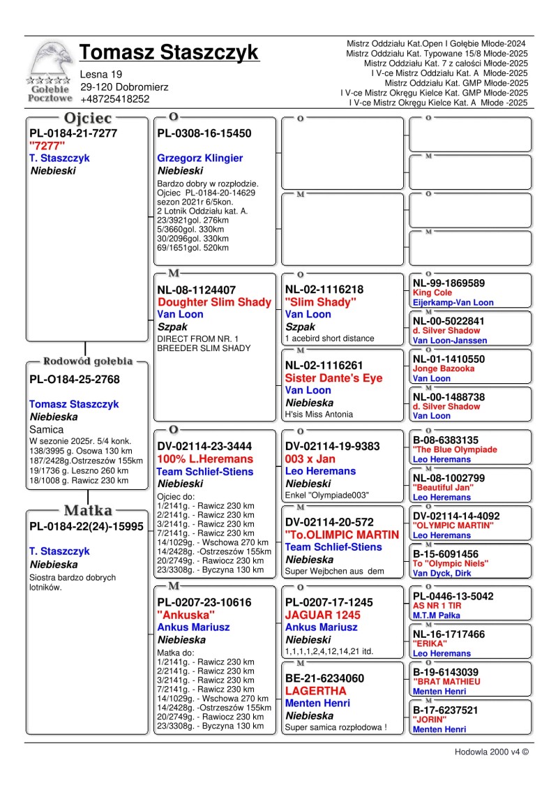 PL-0184-25-2768 oryg. Tomasz Staszczyk, I V-ce Mistrz Okręgu Kielce GMP Młode,I V-ce Mistrz Okręgu Kielce kat. A Młode, gołąb lotowany 5/4 konk.