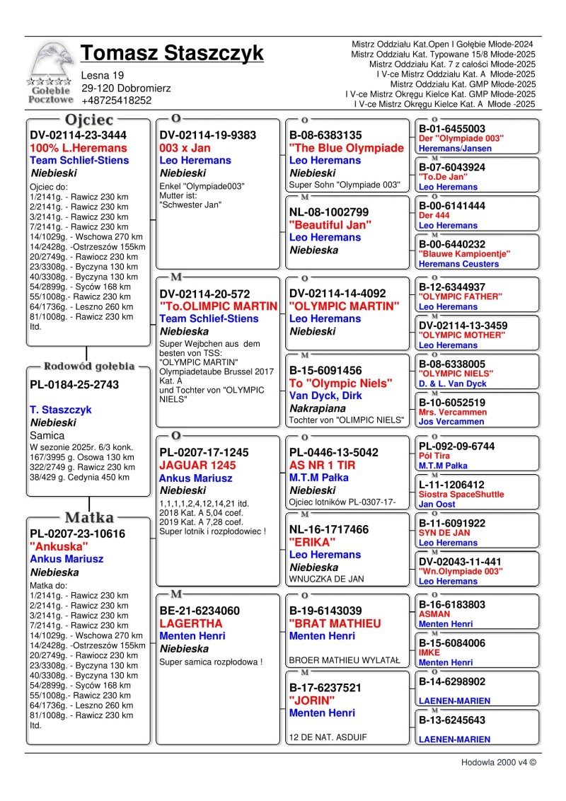 Płeć: samica Hodowca - rasa: oryg. Tomasz Staszczyk Zakończenie: 27.12.2025 godz. 19:38