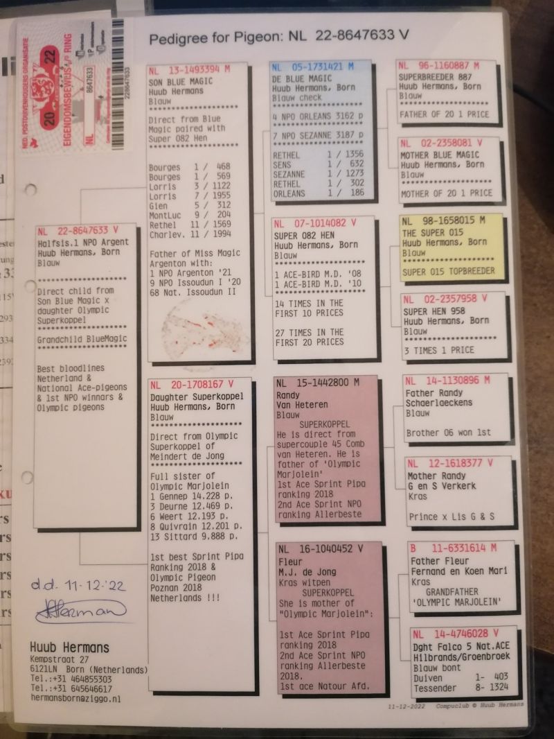 Samica Oryg Huub Hermans Wnuczka DE BLUE MAGIC szczegóły pochodzenia w rodowodzie i poniższych materiałach wysyłka po wpłacie na konto wysyłka 150 zł lub odbiór osobisty tel 604922759 lub odbiór na Wystawie w Katowicach Sobota 10 stycznia