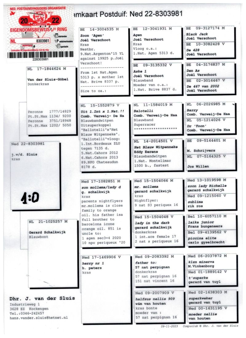 NL-22-8303981 - oryg. Dhr.J. van der SLUIS gołębie dalekodystansowe
