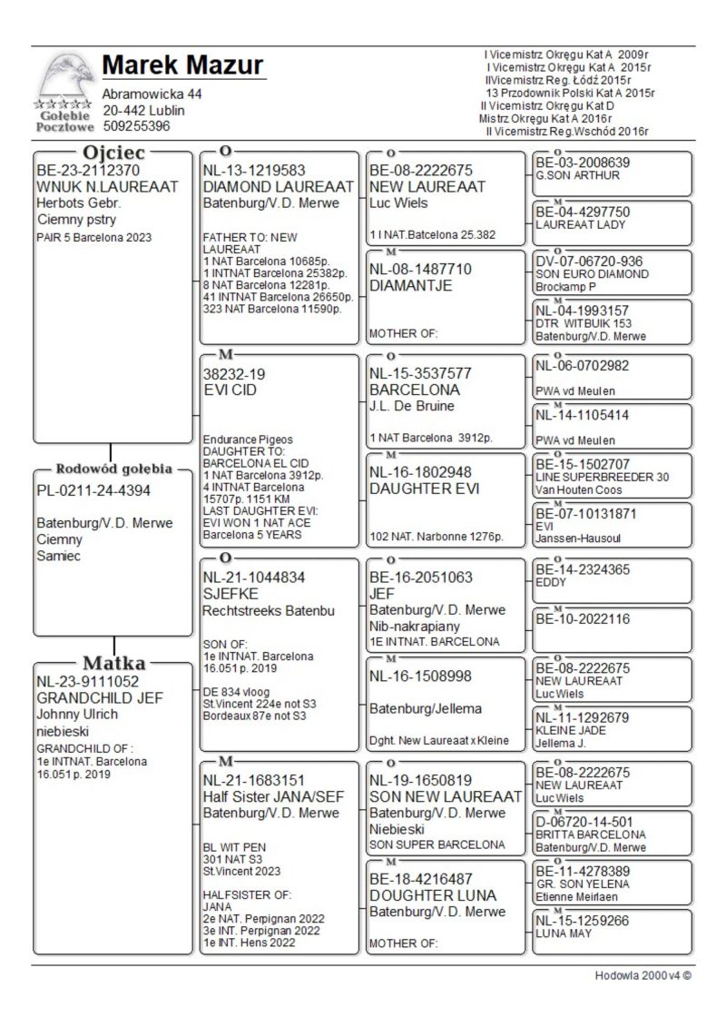 Płeć: samiec Hodowca - rasa: oryg. Marek Mazur Zakończenie: 30.12.2025 godz. 20:08