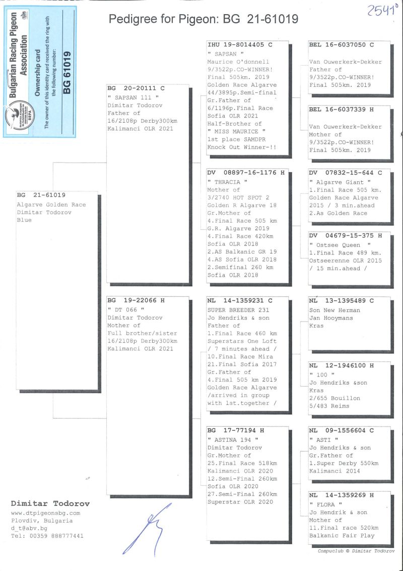 BG-21-61019 uczestnik ALGARVE GOLDEN RACE, linia SAPSAN x ASTINA, oryg. Dimitar Tudorov