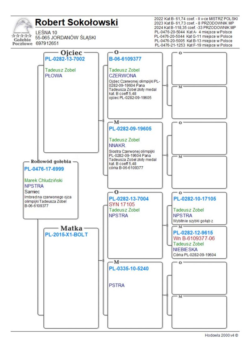PL-0476-17-6999- imbred na czerwonego ojca olimpijki Tadeusza Zobla B-06-6109377
