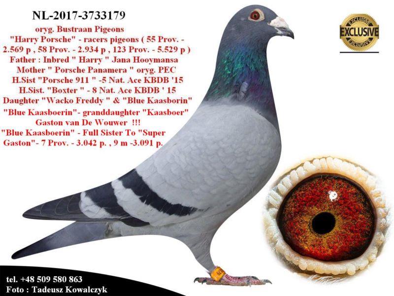 AUKCJA PROMOCYJNA ROCZNIKA 2025 (Cena obowiązuje wyłącznie na tej aukcji) Profesjonalna hodowla z wieloletnim doświadczeniem, posiadająca w swoim stadzie materiał najwyższej światowej klasy, wywodzący się od takich hodowców jak: Jan Hooymans, Gerard Koopman, Mike Ganus, Tjeerd & Jouke Elzinga, Gino Clicque, Jos Vercammen, Jelle Roziers, Bart Geerinckx, Batenburg – v/d Merwe, Altmiks – Pigeons, Jo & Florian Hendriks, Kornelis Winner Loft – linia „Romario”, W & F Ebben, Bert Braspenning, Dirk van den Bulck, Peter v/d Merwe, Jan van de Pasch, Van Elsacker-Jepsen, Roger Desmet – Matthijs, Arie Dijkstra, Leo Heremans, Pieter Veenstra, Gaby Vandenabeele, Karl-Heinz Wichert, Hardy Kruger, Helmut & Alfons Klaas, Gebr. Janssen. Najwyższej klasy materiał hodowlany – najlepsze linie danych Hodowców. Wszystkie wylicytowane gołębie będą dostarczane firmą kurierską.