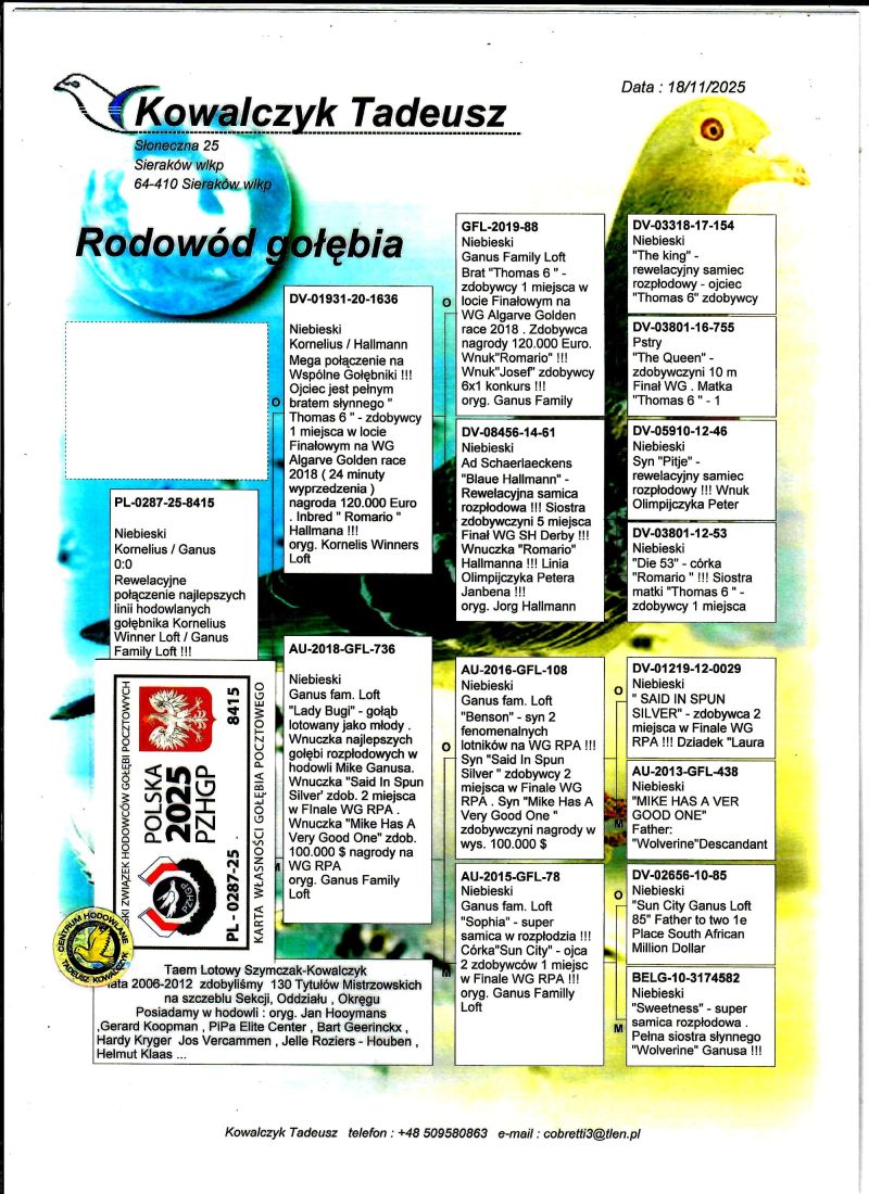 PL-0287-25-8415 Mega połączenie gołębi z linii "Romario" & Ganus Family Loft