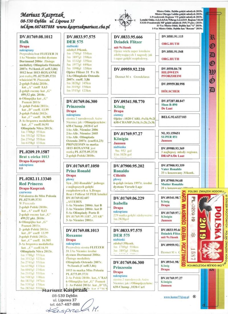 Oryginalny Mariusz Kasprzak. golab z linii Drapa. W sprawie wysyłki proszę o kontakt 781 460 531