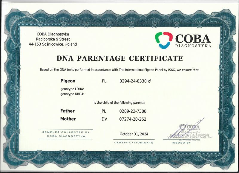 Płeć: młody gołąb Hodowca - rasa: Robert Stańczak Zakończenie: 27.12.2025 godz. 16:38