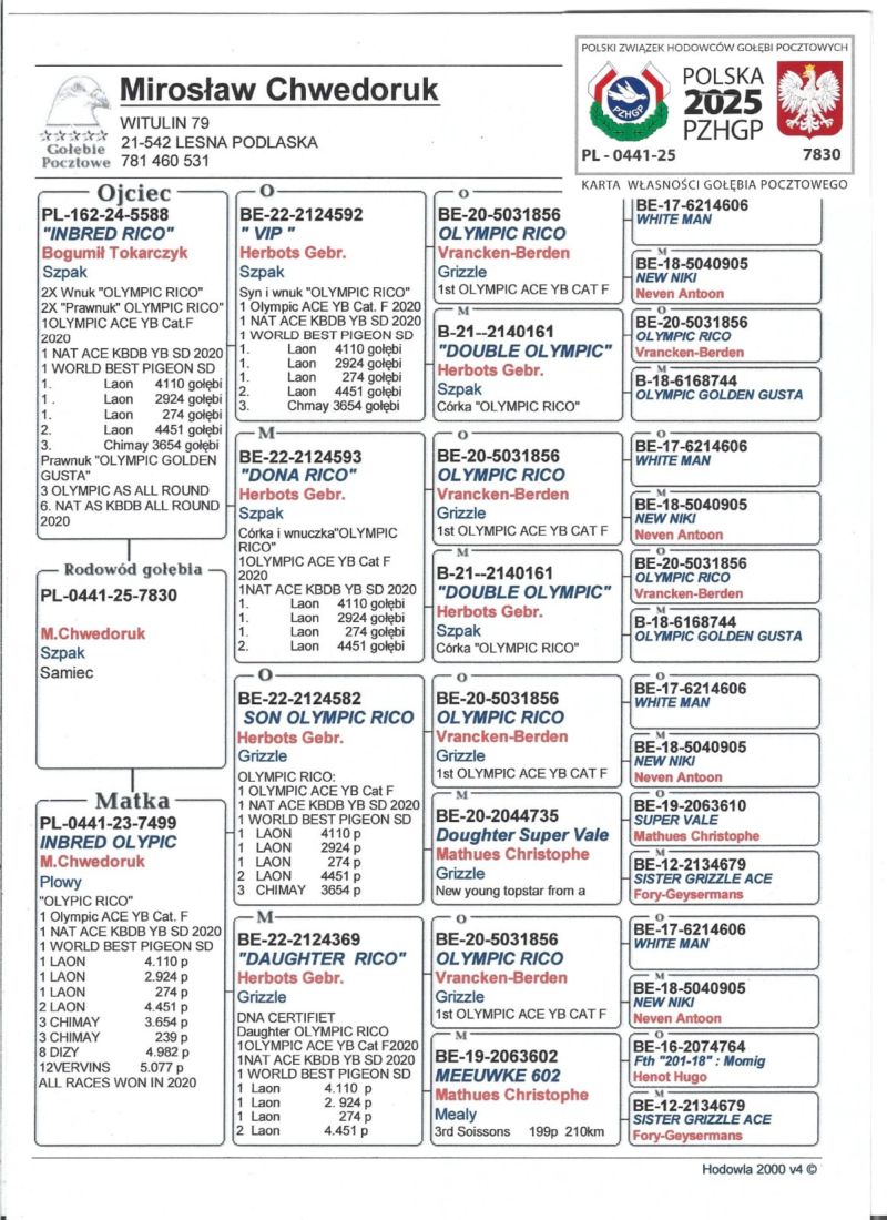 Inbred Olympic Rico w sprawie wysyłki proszę o kontakt 781 460 531
