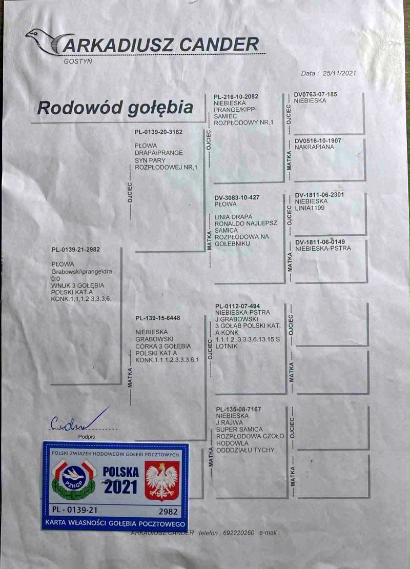 LIKWIDACJA HODOWLI Oryginalny gołab z hodowli Arkadiusz Cander. Szczegóły pochodzenia w rodowodzie. Więcej informacji pod nr tel.: 577 608 267