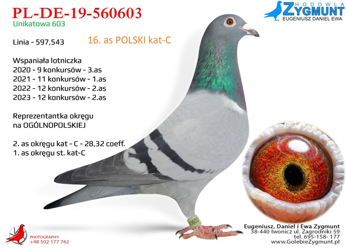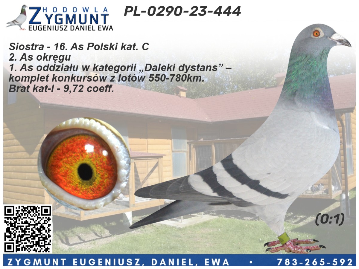 Gołąb o potwierdzonej wartości rodzinnej – linia, która robi wynik seryjnie. ***Możliwość odbioru na wystawie ogólnopolskiej w Katowicach***Transport: do 2 sztuk – 100 zł, 3–4 sztuki – 150 zł, powyżej 5 sztuk – 200 zł---Sezon 2025 przyniósł kolejne świetne wyniki – zdobyliśmy 4. i 5. miejsce w oddziale oraz tytuł II vice-mistrza oddziału w kategoriach MP oraz kat-A. Na wspólnych gołębnikach nasze ptaki pokazały klasę: 3. miejsce w finale WG Zatoka Puck, 7. AS WG Zatoka Puck, 36. AS OLR SuperCup, 33. i 86. AS OLR Mazury oraz 11. miejsce drużynowo na WG Zatoka Puck. Poprzedni sezon 2024 był jednym z najlepszych w naszej historii – 1., 3. i 4. miejsce w oddziale to wynik, jakiego jeszcze nie było. Do tego 1. i 2. miejsce w kat. MP oraz 1. w kat. A. Sezon zakończyliśmy z 9 gołębiami z 6 konkursami (w tym 5 pierwszych w oddziale) i aż 86 gołębiami z ponad 4 konkursami. Na wspólnych gołębnikach również liczne sukcesy: 2. z finału OLR Mazury, 16. z Ekstra Finału WG Zatoka Puck, 12. z MWG Rogowo, 2. z WG Zatoka Puck, 70. z finału MWG Rogowo, 43. AS Rogowo, 55. z finału OLR SuperCup, 36. AS WG Podhale, a gołąb po naszym samcu zdobył 2. miejsce w finale OLR SuperCup. Więcej informacji w rodowodach lub pod numerem telefonu 783 265 592.