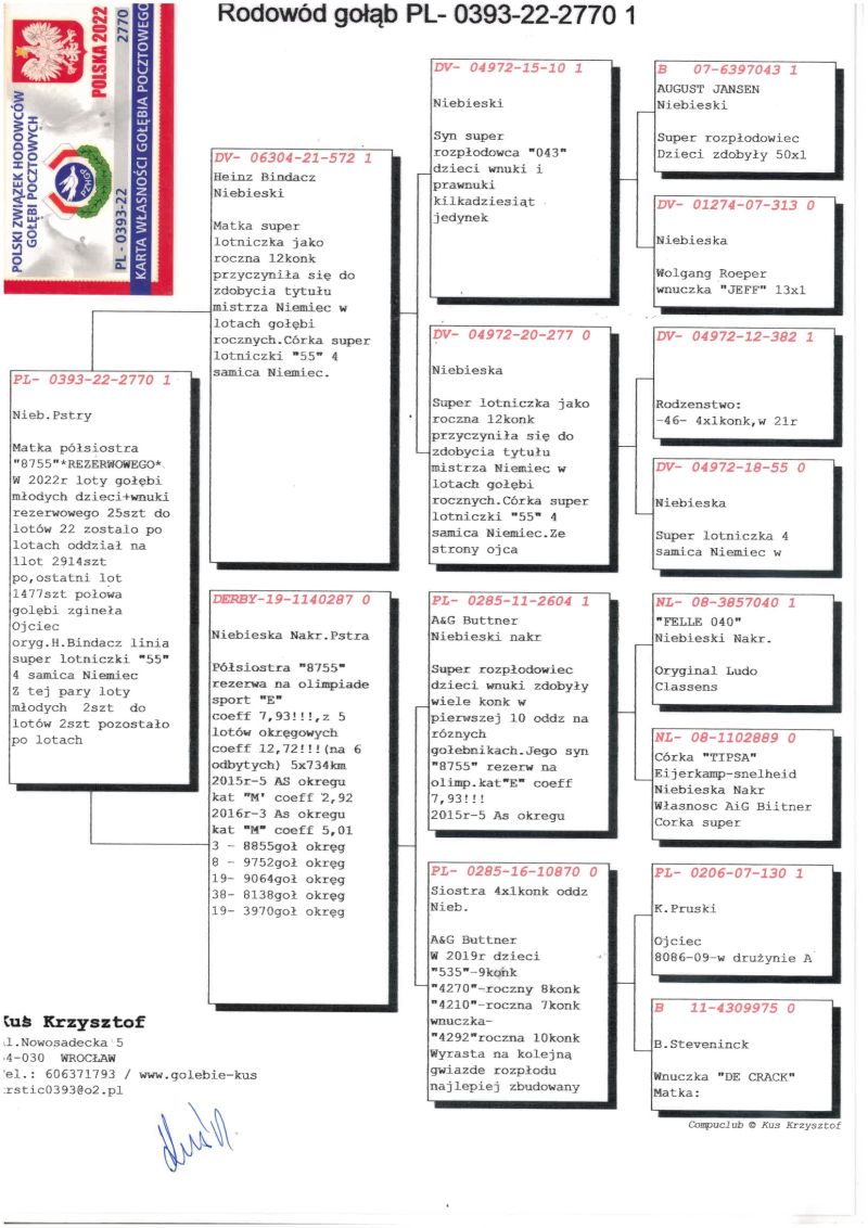 Oryginalny gołąb z hodowli Krzysztofa Kusia. Przed zakupem proszę o kontakt telefoniczny tel. 602185143 Mile widziany odbiór osobisty, po wcześniejszym uzgodnieniu terminu. Możliwość wysyłki prywatnym kurierem. Koszt wysyłek pokrywa kupujący.