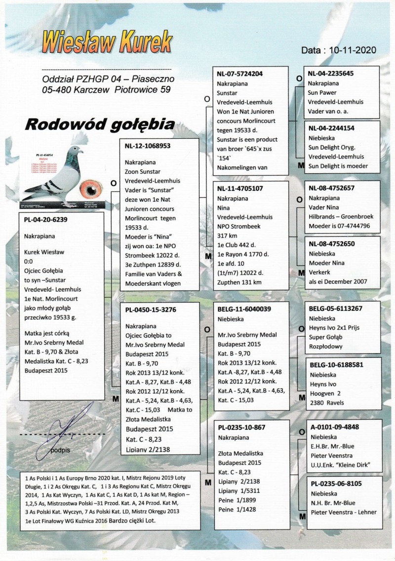 Oryginalny gołąb z hodowli Wiesława Kurka. Przed zakupem proszę o kontakt telefoniczny tel. 602185143 Mile widziany odbiór osobisty, po wcześniejszym uzgodnieniu terminu. Możliwość wysyłki prywatnym kurierem. Koszt wysyłek pokrywa kupujący.