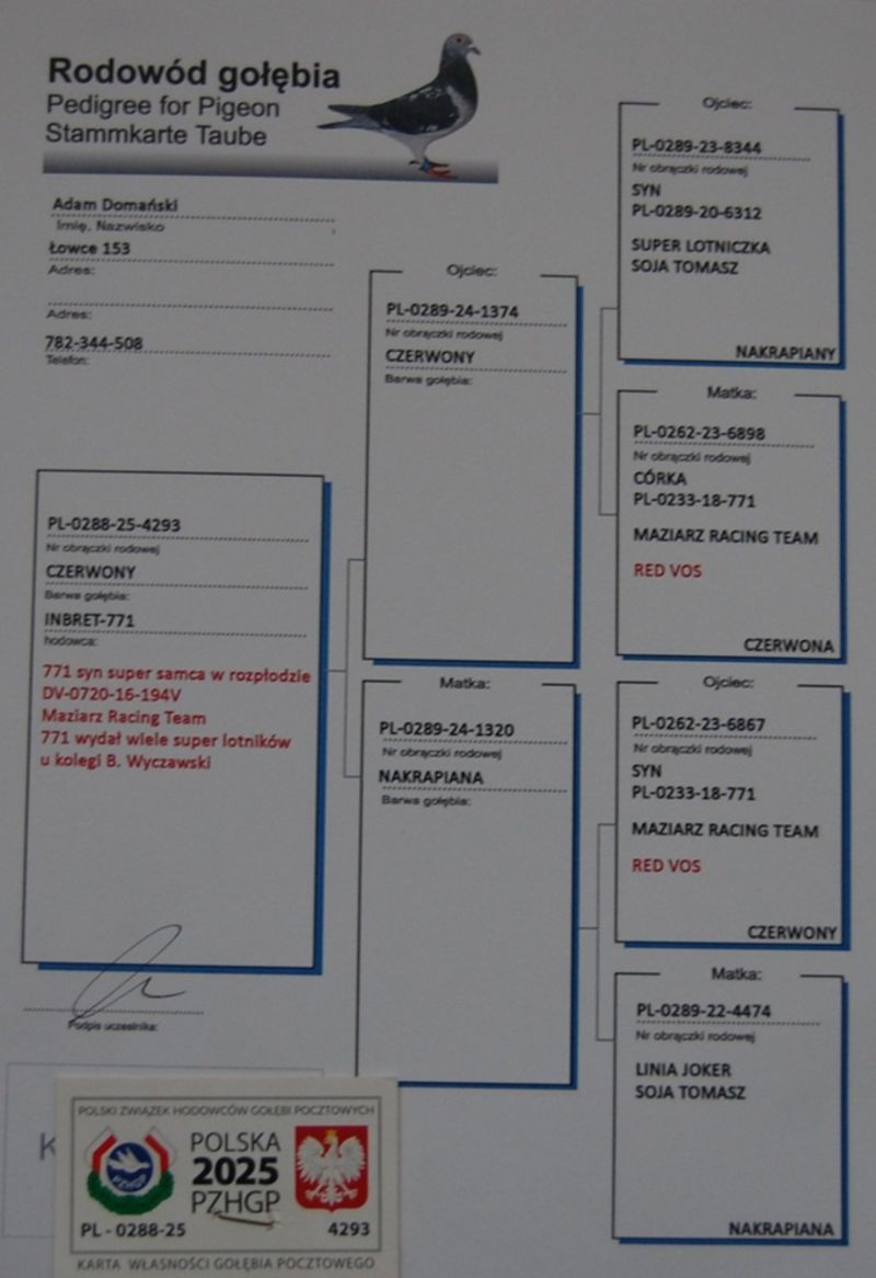 PL-0288-25-4293 Oryg.Adam Domański - Maziarz Racing Team.Soja Tomasz