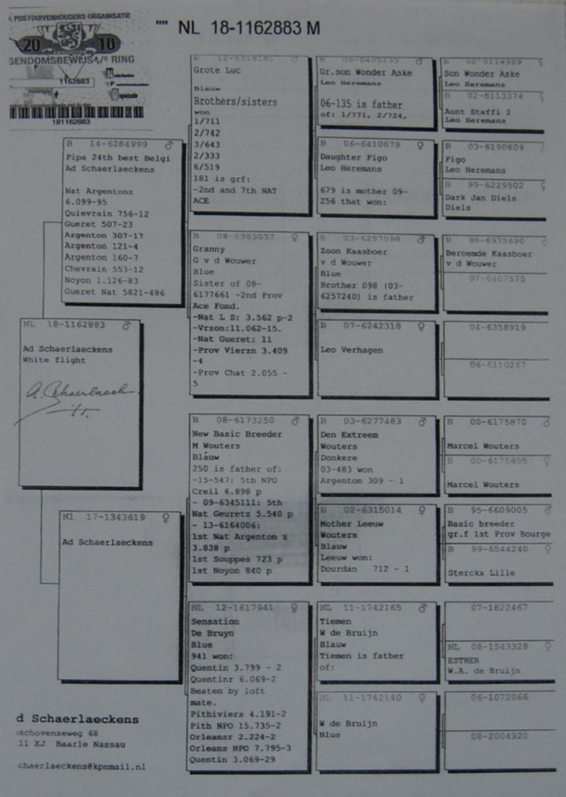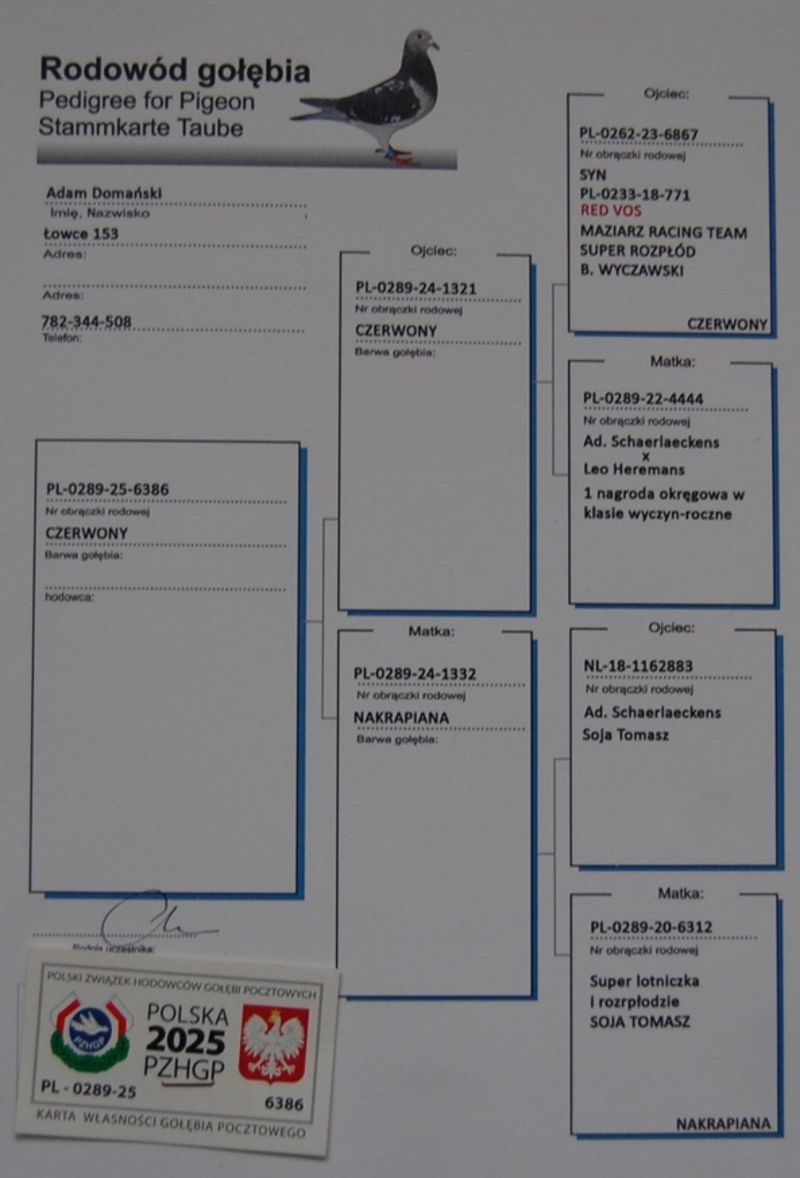 Oryg. Gołąb z hodowli Adama Domańskiego szczegóły pochodzenia w rodowodzie lub pod nr.tel. 782-344-508