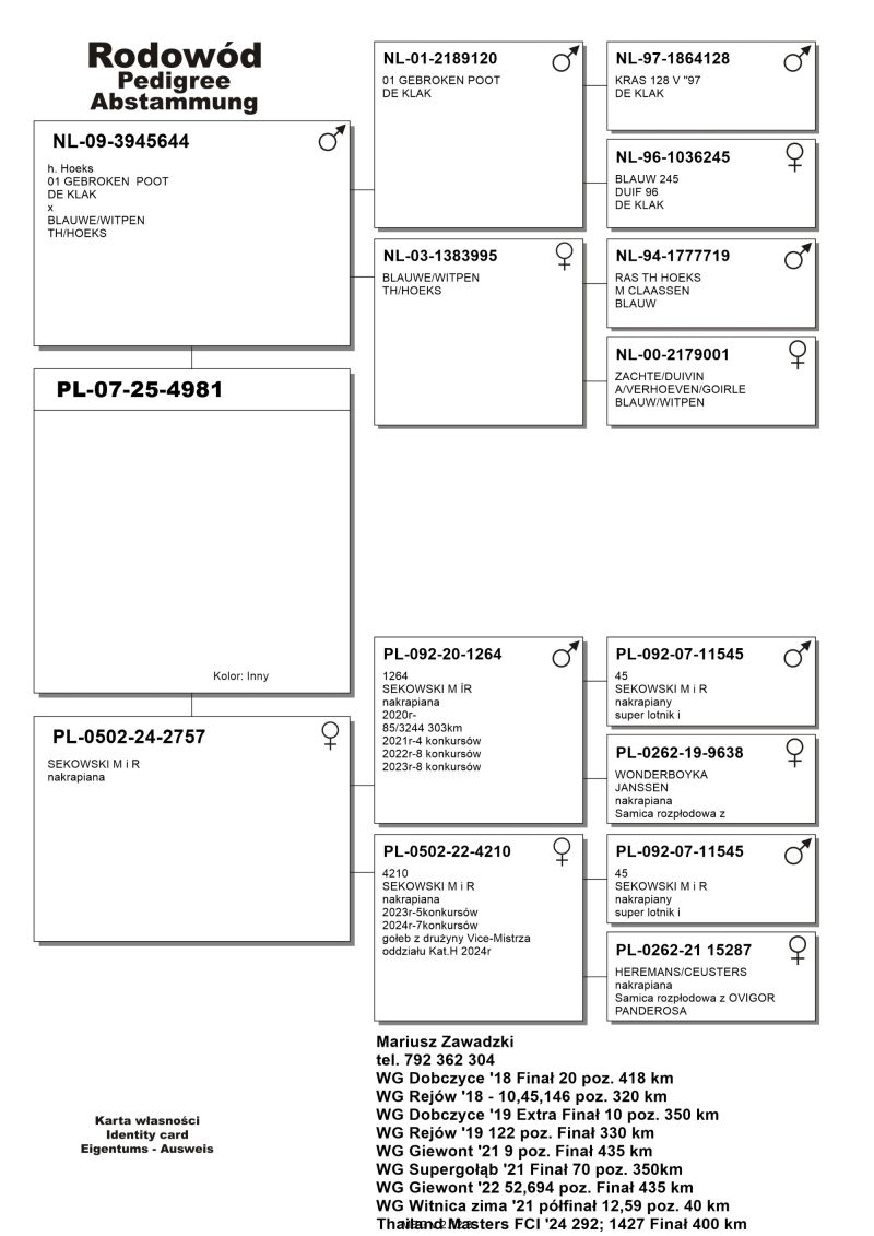 Więcej informacji w rodowodzie oraz pod numerem telefonu: 792 362 304