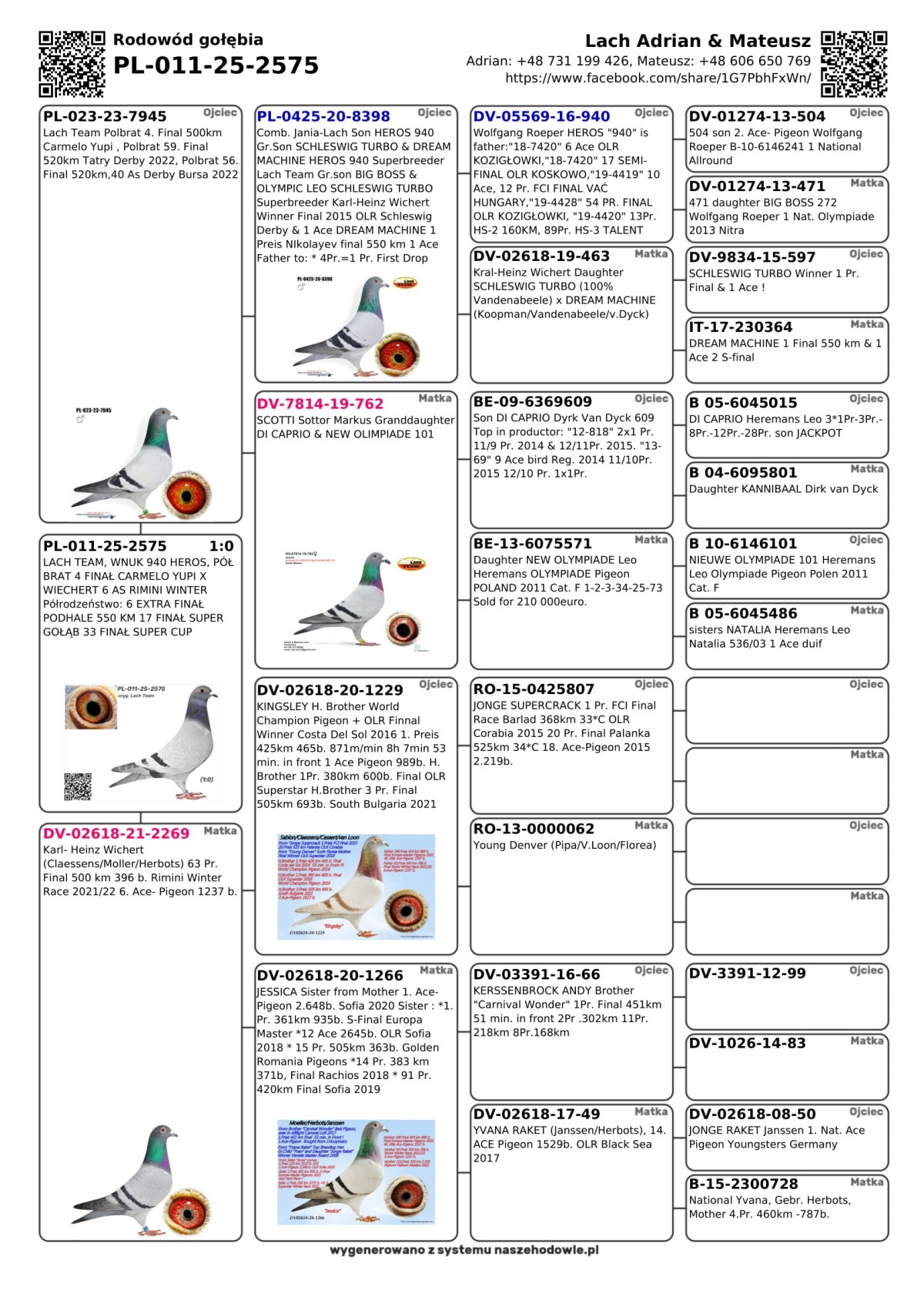33 FINAŁ SUPER CUP Szczegóły pochodzenia w rodowodzie i załączonych materiałach. Gołębie po kuracjach i szczepieniu. Zapewniamy transport gołębi. Więcej informacji pod nr tel.: +48 731 199 426.