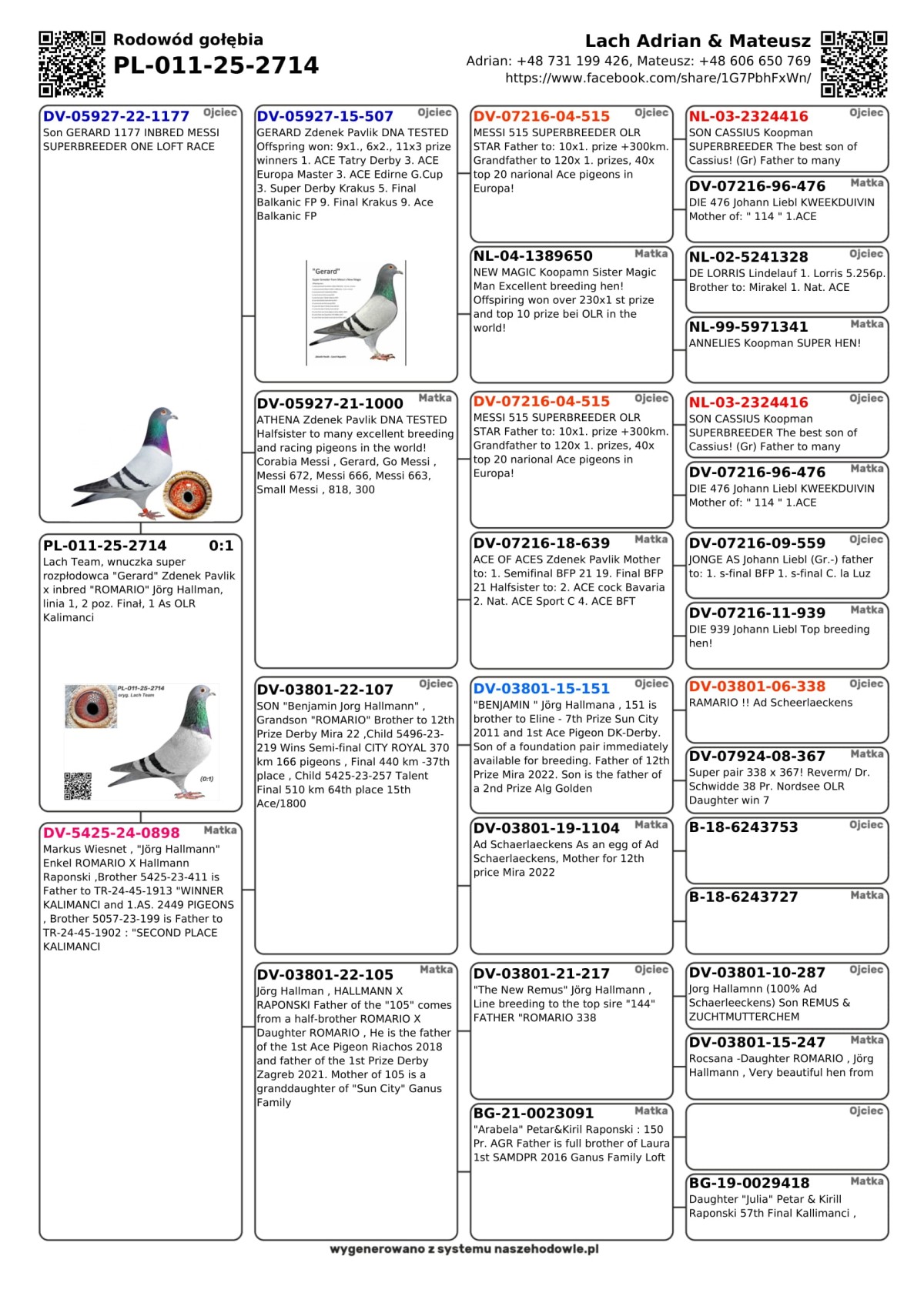 PL-011-25-2714 - Lach Team, wnuczka super rozpłodowca "Gerard" Zdenek Pavlik x inbred "ROMARIO" Jörg Hallman