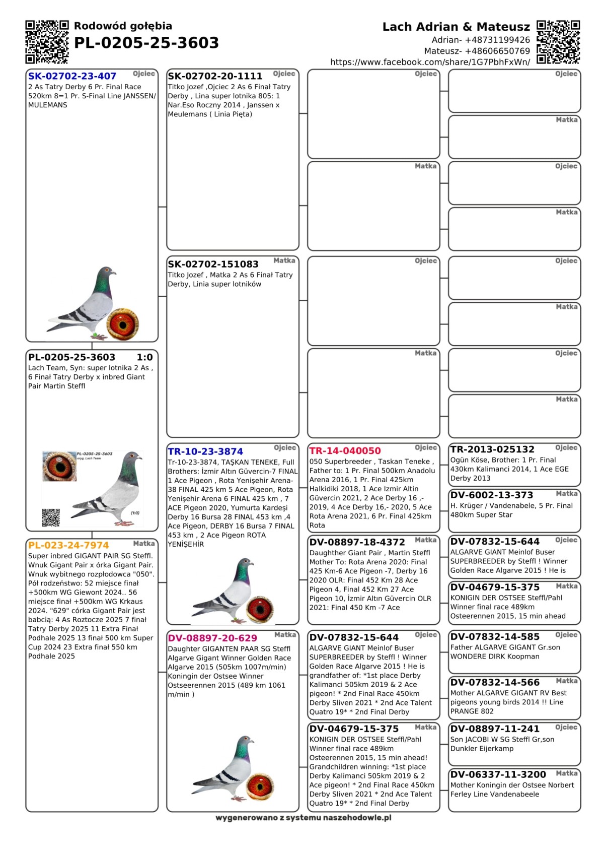 PL-0205-25-3603 - Lach Team, Syn: super lotnika 2 As , 6 Finał Tatry Derby x inbred Giant Pair Martin Steffl