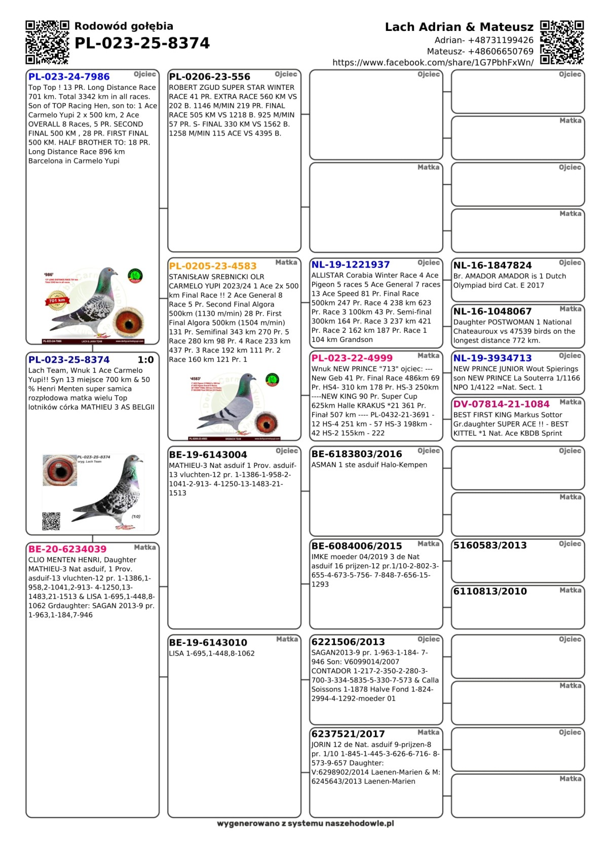 PL-023-25-8374 - Lach Team, Wnuk 1 Ace Carmelo Yupi!! Syn 13 miejsce 700 km & Henri Menten