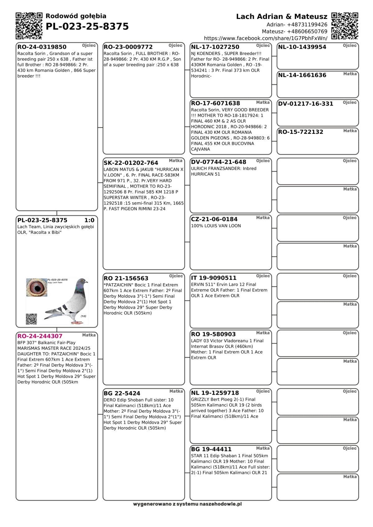 PL-023-25-8375 - Lach Team, Linia zwycięskich gołębi OLR, "Racolta x Bibi"