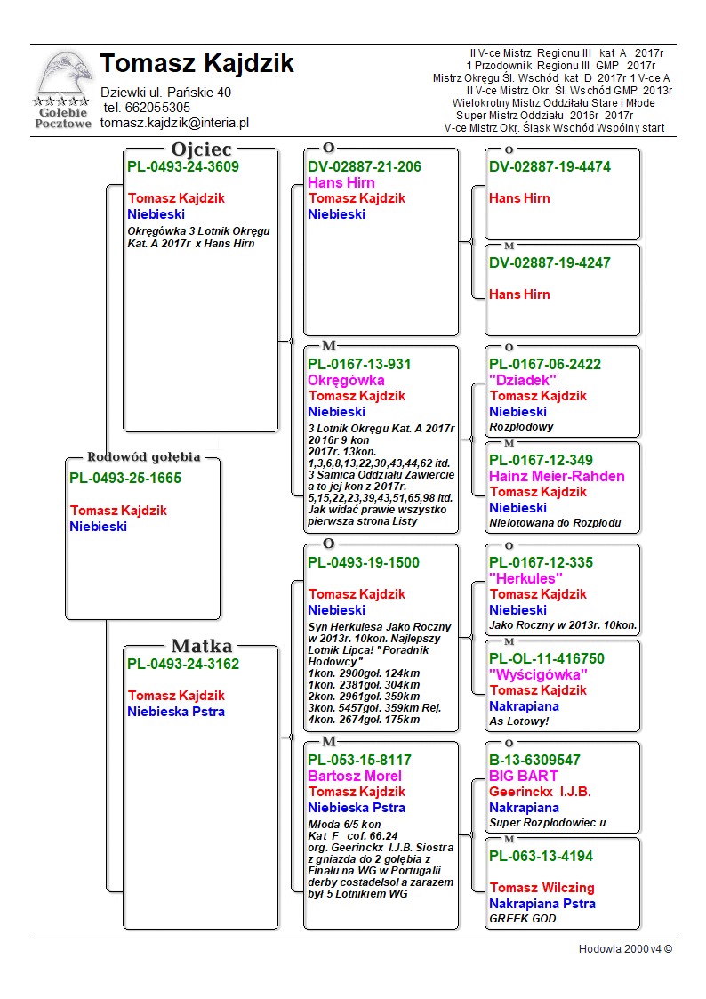 Młody to Samiec, jest po fajnych rodzicach i jeszcze lepszych dziadkach a szczegóły w rodowodzie. Więcej informacji pod nr tel.: 662 055 305 Ze względu na brak wysyłek pocztą mile widziany odbiór osobisty lub transport prywatnym kurierem do dogadania ale w biskiej odległości 100km mogę zawieść w cenie paliwa. Również do Warszawy i Konina do ogarnięcia dlatego przed zalicytowaniem proszę o kontakt w spawie wysyłki. UWAGA Istnieje możliwość późniejszego odbioru ptaków np. na wystawie ogólnopolskiej Kontakt: 662055305