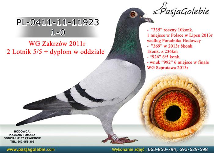 Młody to Samiec, jest po fajnych rodzicach i jeszcze lepszych dziadkach a szczegóły w rodowodzie. Więcej informacji pod nr tel.: 662 055 305 Ze względu na brak wysyłek pocztą mile widziany odbiór osobisty lub transport prywatnym kurierem do dogadania ale w biskiej odległości 100km mogę zawieść w cenie paliwa. Również do Warszawy i Konina do ogarnięcia dlatego przed zalicytowaniem proszę o kontakt w spawie wysyłki. UWAGA Istnieje możliwość późniejszego odbioru ptaków np. na wystawie ogólnopolskiej Kontakt: 662055305