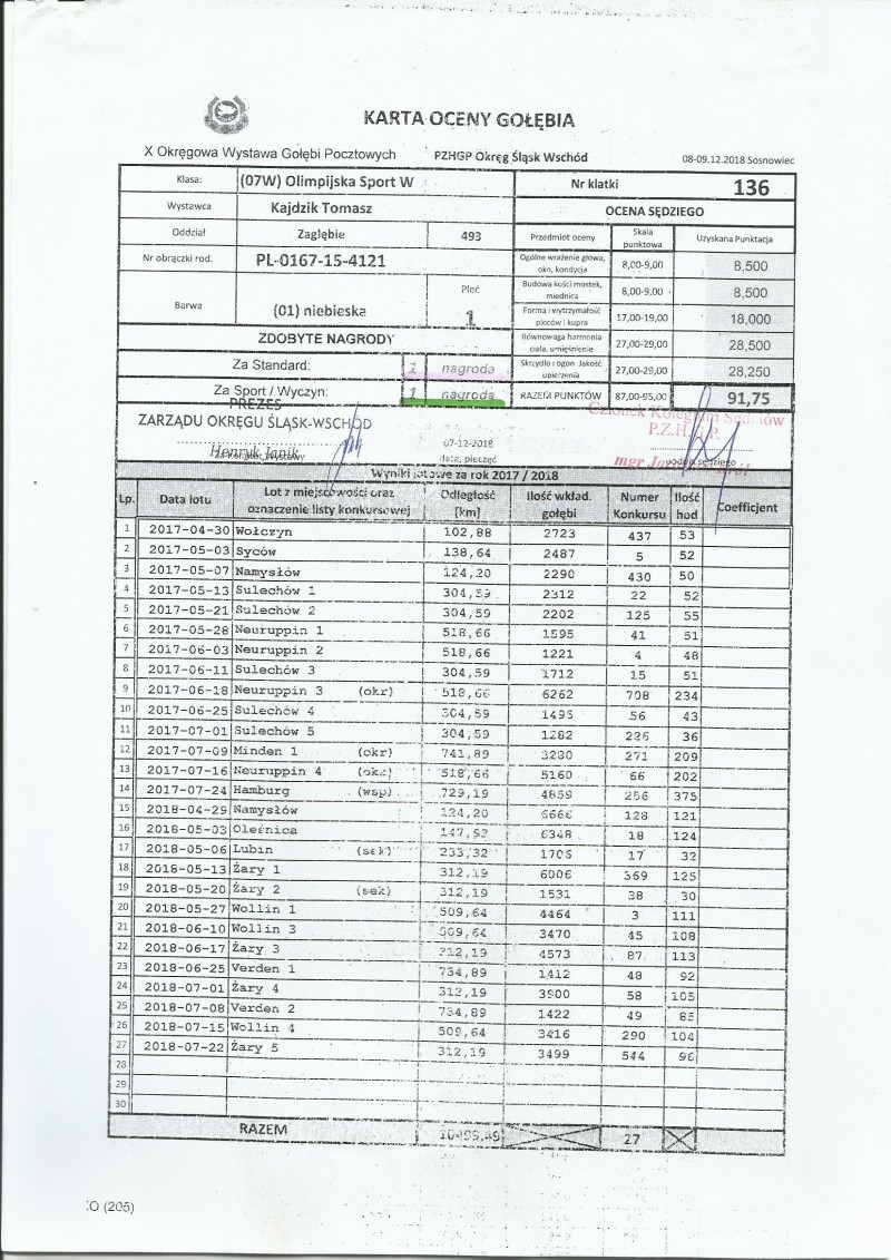 Płeć: samiec Hodowca - rasa: oryg. Tomasz Kajdzik Zakończenie: 28.12.2025 godz. 18:20