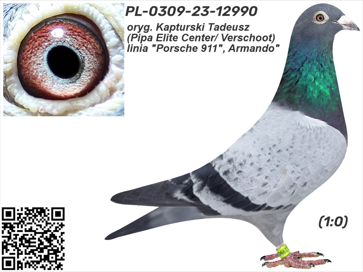 oryg. Kapturski Tadeusz (Pipa Elite Center/ Verschoot), linia "Porsche 911", Armando" Szczegóły pochodzenia w rodowodzie i załączonych materiałach. Więcej informacji o gołębiach i transporcie pod nr tel.: +48 505 674 678.