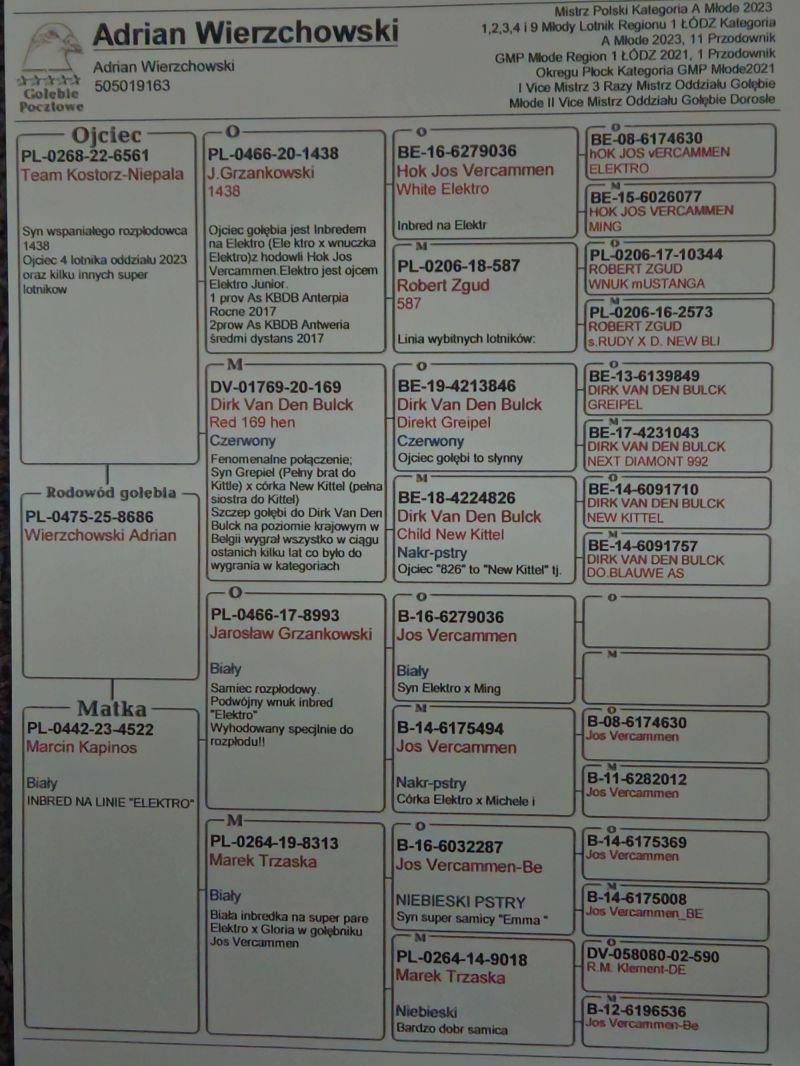 Płeć: młody gołąb Hodowca - rasa: Wierzchowski Adrian Zakończenie: 30.12.2025 godz. 18:18