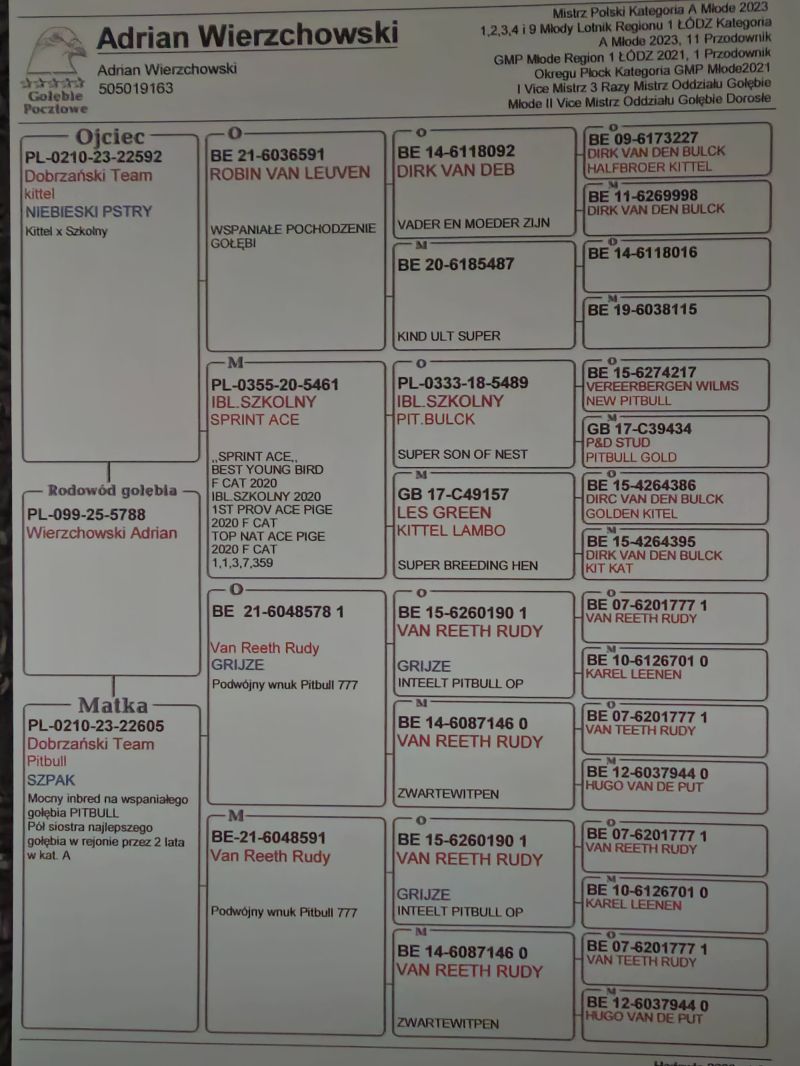 Płeć: młody gołąb Hodowca - rasa: Wierzchowski Adrian Zakończenie: 30.12.2025 godz. 18:14