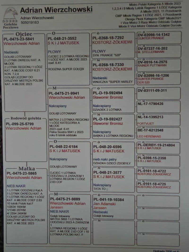 Płeć: młody gołąb Hodowca - rasa: Wierzchowski Adrian Zakończenie: 30.12.2025 godz. 18:04
