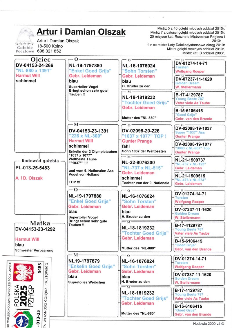 Płeć: młody gołąb Hodowca - rasa: Oryg. Artur i Damian Olszak Zakończenie: 29.12.2025 godz. 22:10