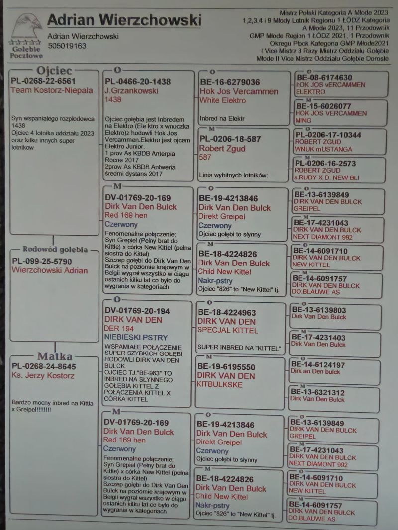 Płeć: młody gołąb Hodowca - rasa: Wierzchowski Adrian Zakończenie: 30.12.2025 godz. 17:54