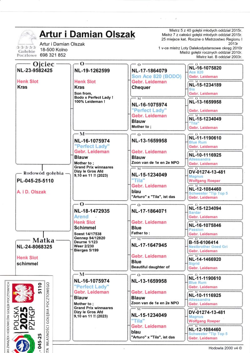 Płeć: młody gołąb Hodowca - rasa: Oryg. Artur i Damian Olszak Zakończenie: 29.12.2025 godz. 22:16
