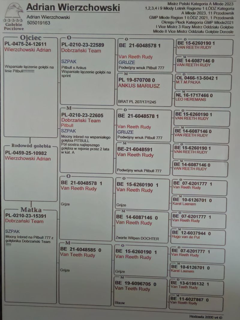 Płeć: młody gołąb Hodowca - rasa: Wierzchowski Adrian Zakończenie: 30.12.2025 godz. 17:52