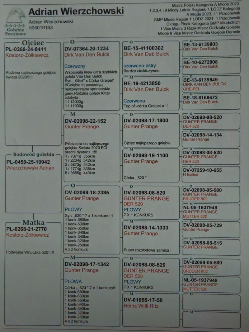 Płeć: młody gołąb Hodowca - rasa: Wierzchowski Adrian Zakończenie: 30.12.2025 godz. 17:44