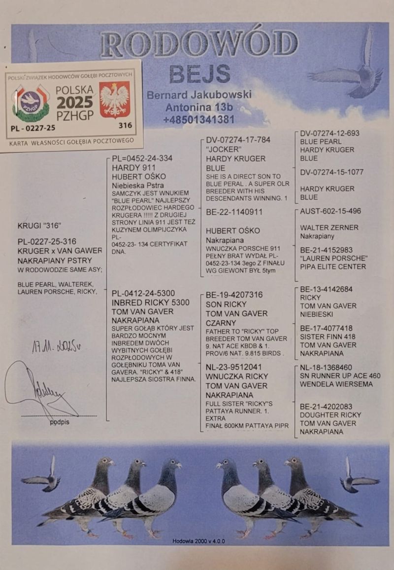 Płeć: młody gołąb Hodowca - rasa: oryg. Bernard Jakubowski Zakończenie: 25.12.2025 godz. 16:50